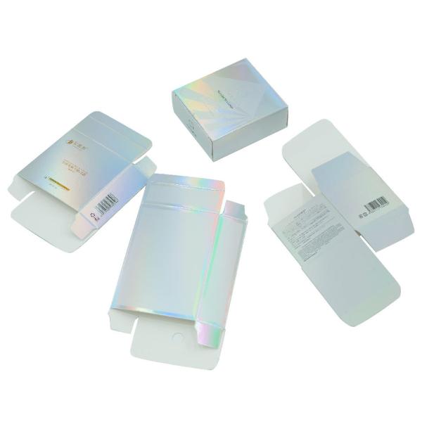 Custom logo holographic printed flat pack folding cosmetic packaging front lock gradient skincare box